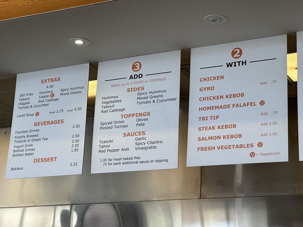 Introducing the menu at Pita 360, a Mediterranean gem in Gardena, CA, offering a variety of delicious options. Featured items include the Rice Plate with a choice of pilaf or brown rice and three sides, the Pita Pocket filled with house-baked goodness, and the fresh Salad served with a house-baked pita. Sides like Falafel, Hummus, and Tabouli complement the main dishes perfectly. For a sweet ending, don't miss out on their Baklava dessert. Customers rave about the freshness and flavors of the dishes, with standout items like the chicken kabob Pita Pocket and the customizable Salad with all the toppings. The fast service, friendly staff, and ample seating make Pita 360 a go-to spot for a satisfying and healthy Mediterranean meal.